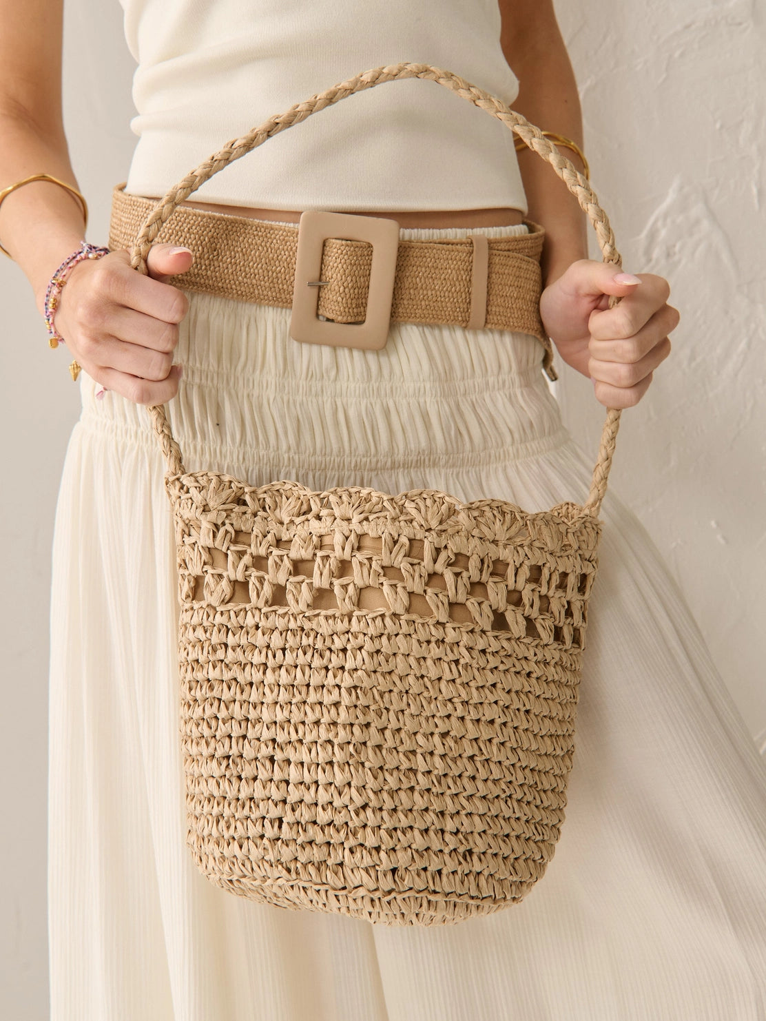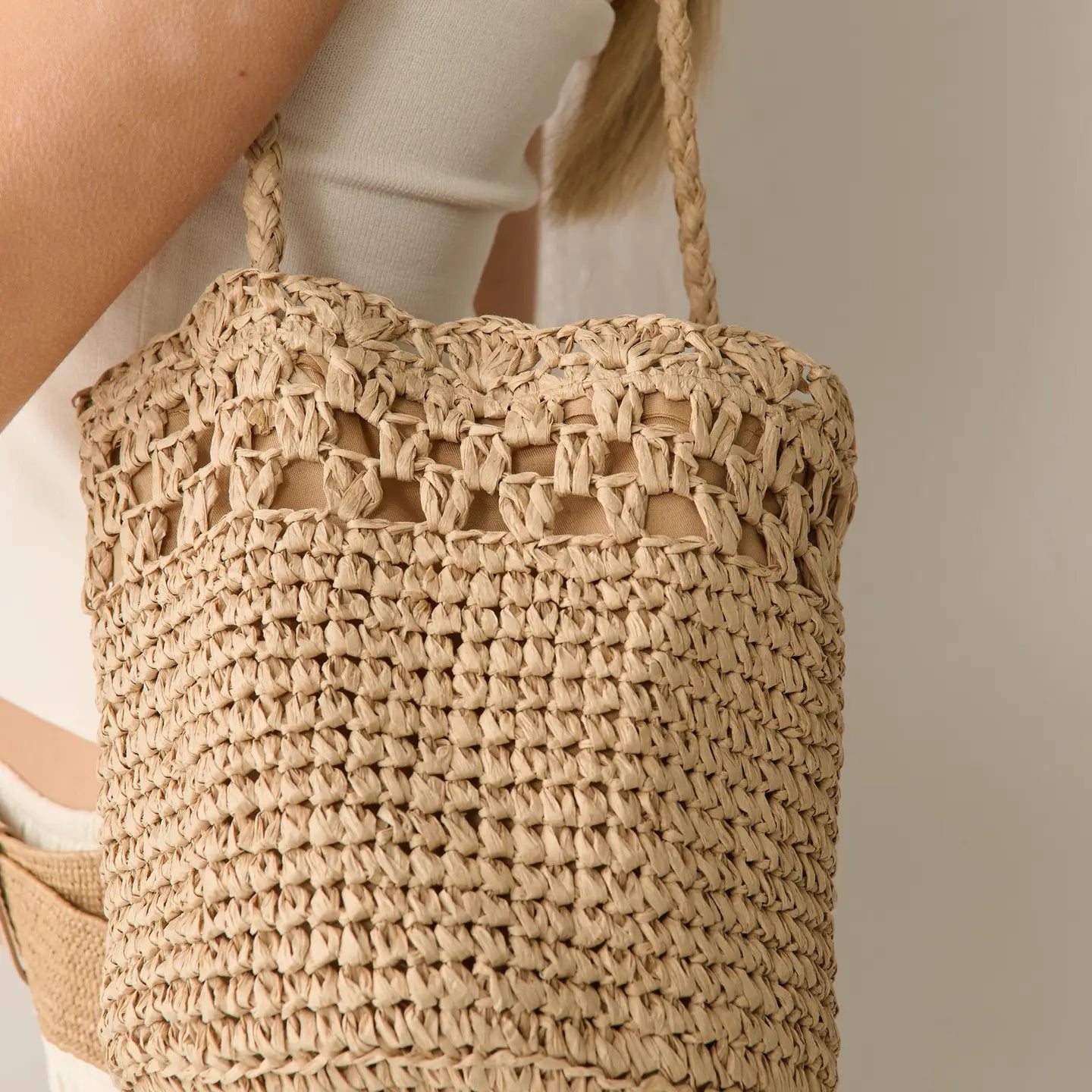 Effortlessly chic and endlessly versatile, the Handwoven Coastline Bucket Bag is your go-to for sun-soaked days and balmy nights. Crafted from natural woven straw, this beautifully textured bag brings relaxed bohemian elegance to any outfit. The soft yet structured design is fully lined with an internal pocket and finished with a braided shoulder strap for comfortable wear and an artisanal, beach-to-bar feel. Perfectly sized to hold your daily essentials, this bag pairs seamlessly with flowing dresses, linen sets, or denim for an elevated coastal look. Ideal for everyday wear, whether you’re wandering seaside markets or heading to a long lunch, this piece adds that effortless, laid-back luxe vibe. A timeless summer staple you’ll reach for again and again.