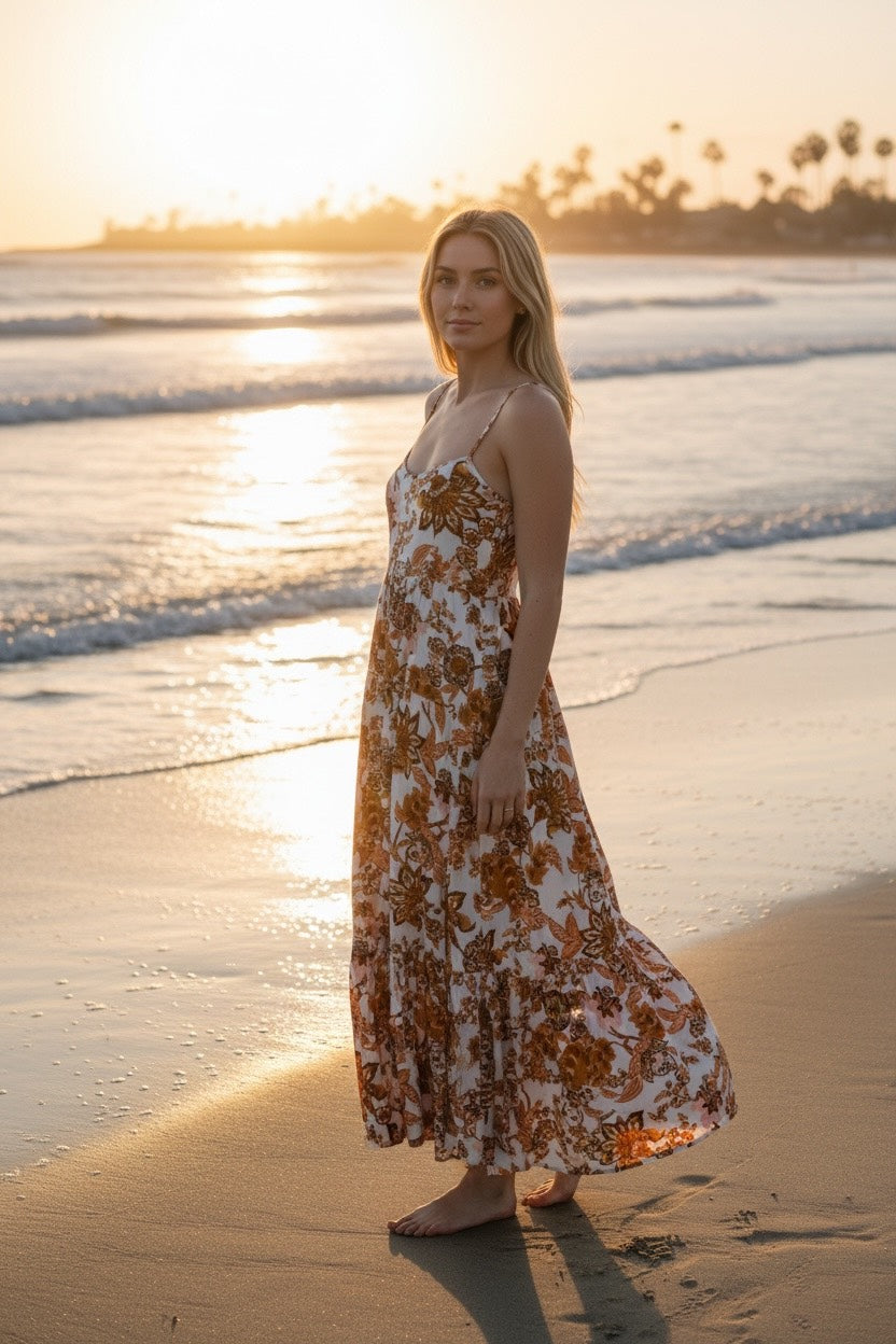 Meet the gorgeous Harvest Bohemian Slip Maxi Dress. Bringing all the sunny vibes and bohemian charm. This dress is perfect for any occasion, be it a casual stroll through the markets or dining out for lunch or dinner. The colours are divine, and this dress looks great with a jacket and some boots!