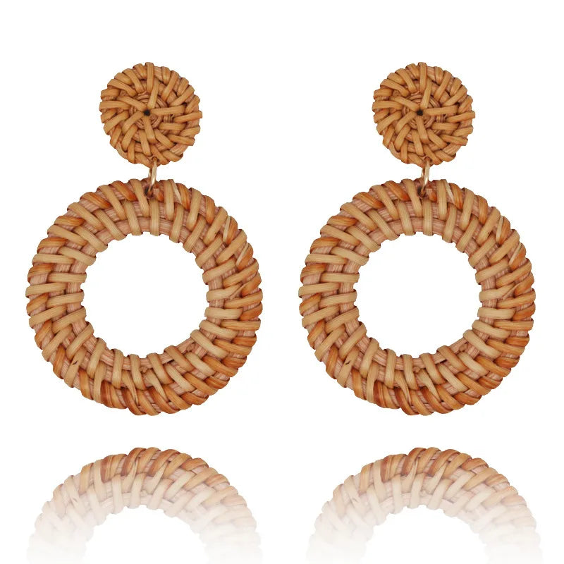 Lightweight, earthy and effortlessly boho. These hand-woven rattan drop earrings feature a double-circle design that adds warmth and natural texture to any outfit. Perfect for beach days, Island stays, markets and everyday coastal style.