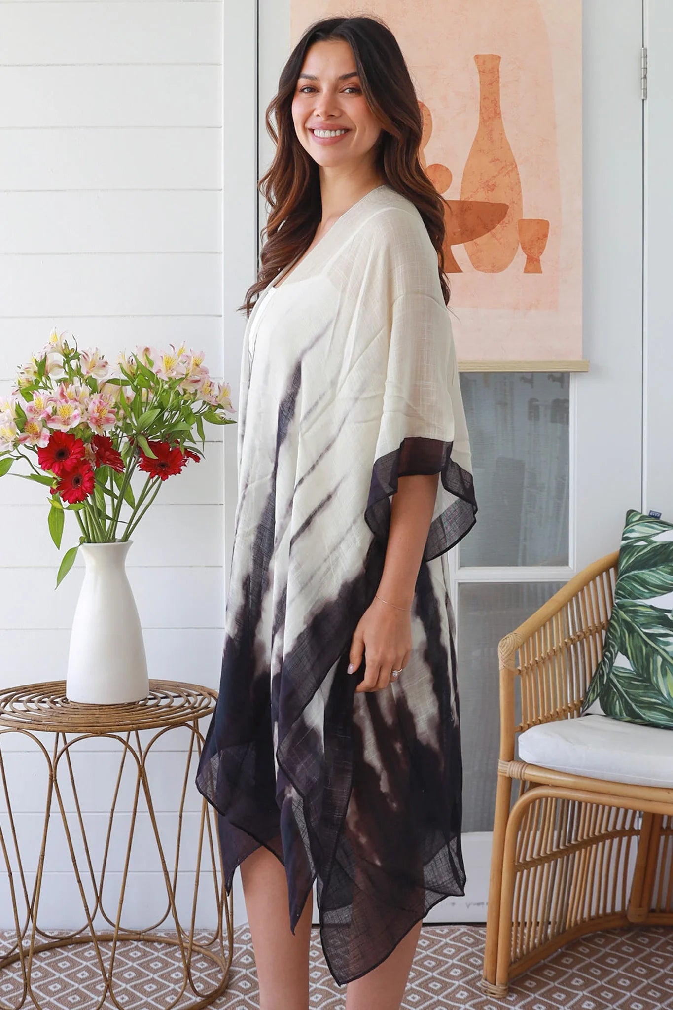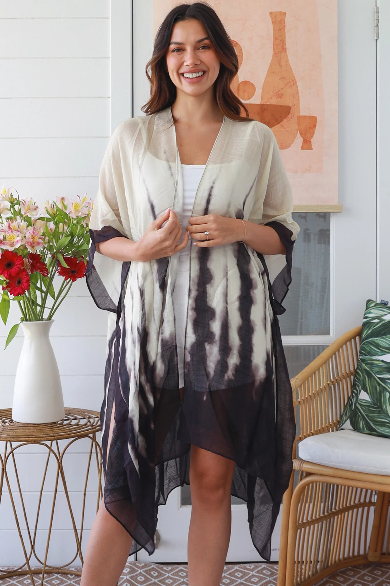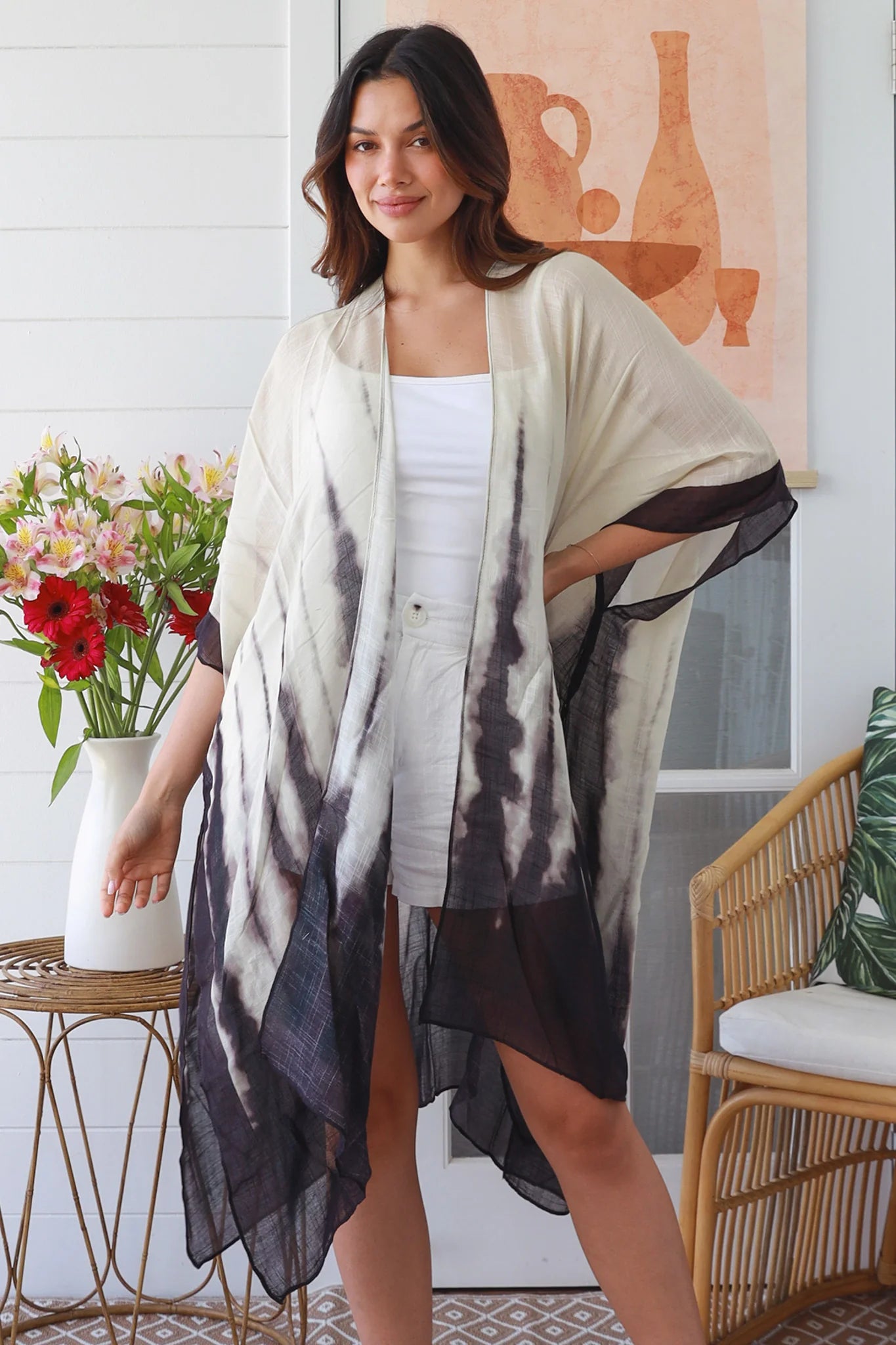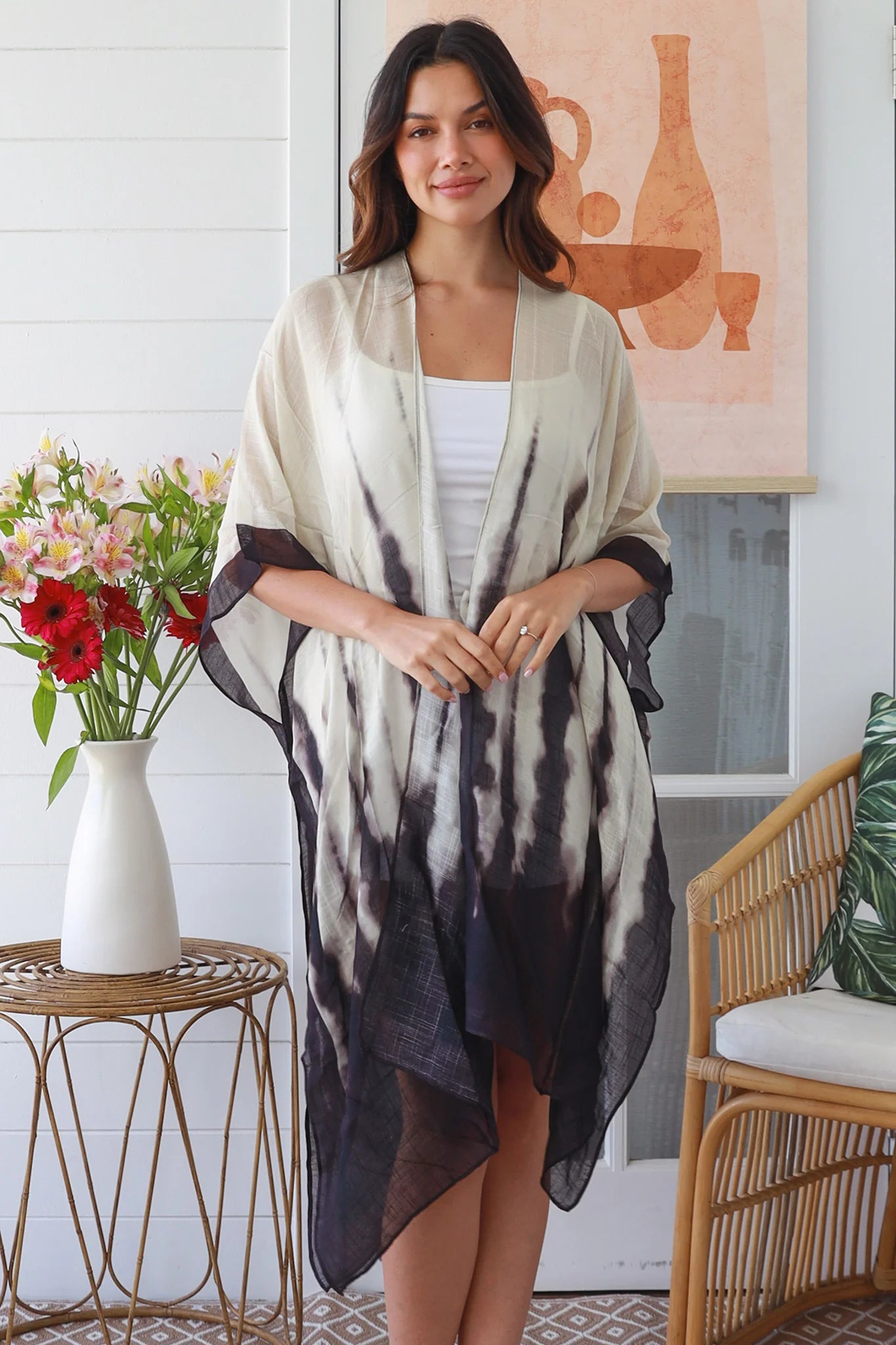 The Earth Spirit Kimono will elevate any outfit! Resort wear, beach wear, festival wear or a cute original outfit. Style it with denim and a crop for daytime wandering or festivals. Drape over flowy pants and a top. Drape over a dress for a romantic evening look. Made from 100% Viscose, this stunning piece exudes a free-spirited vibe.