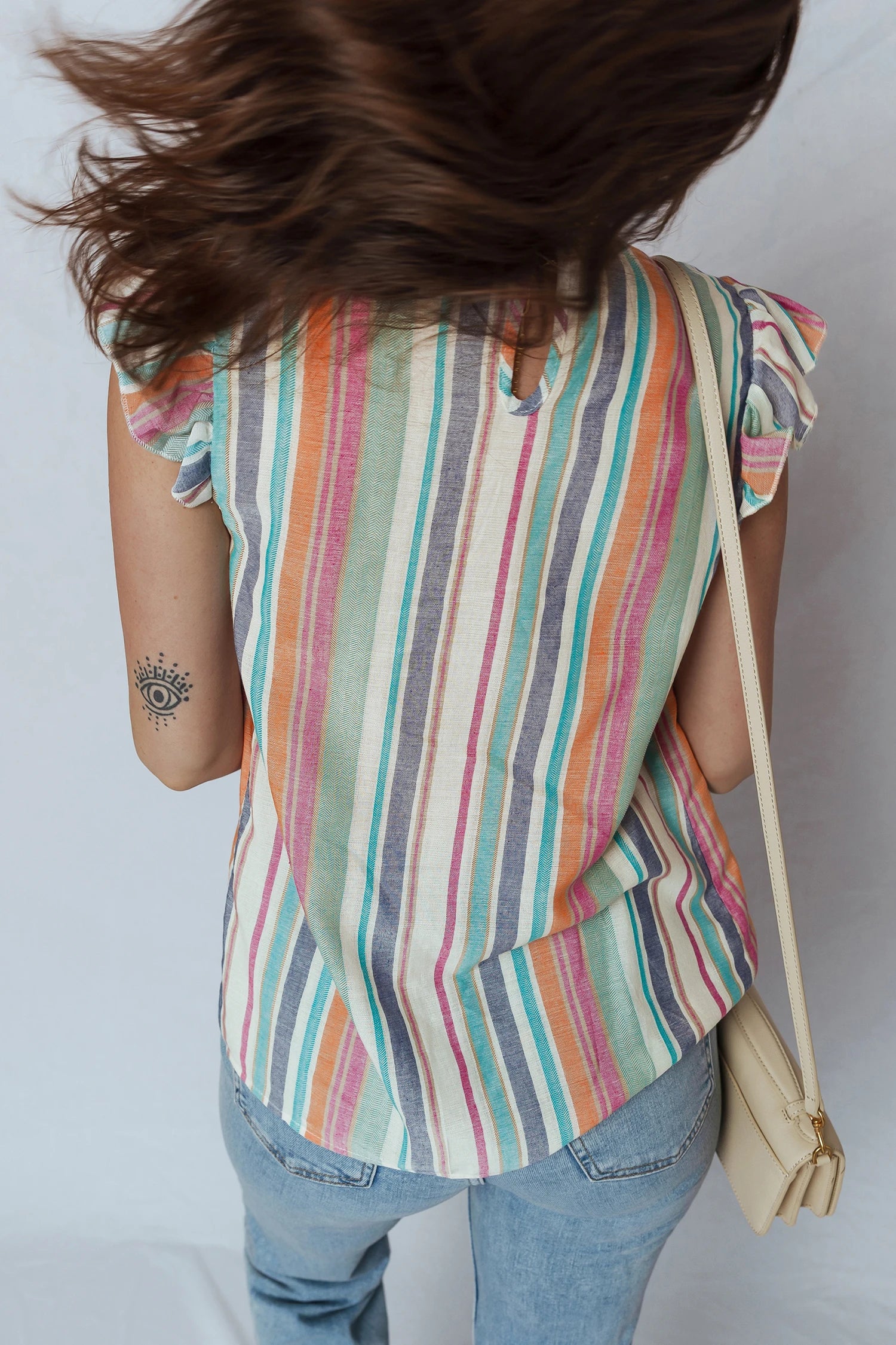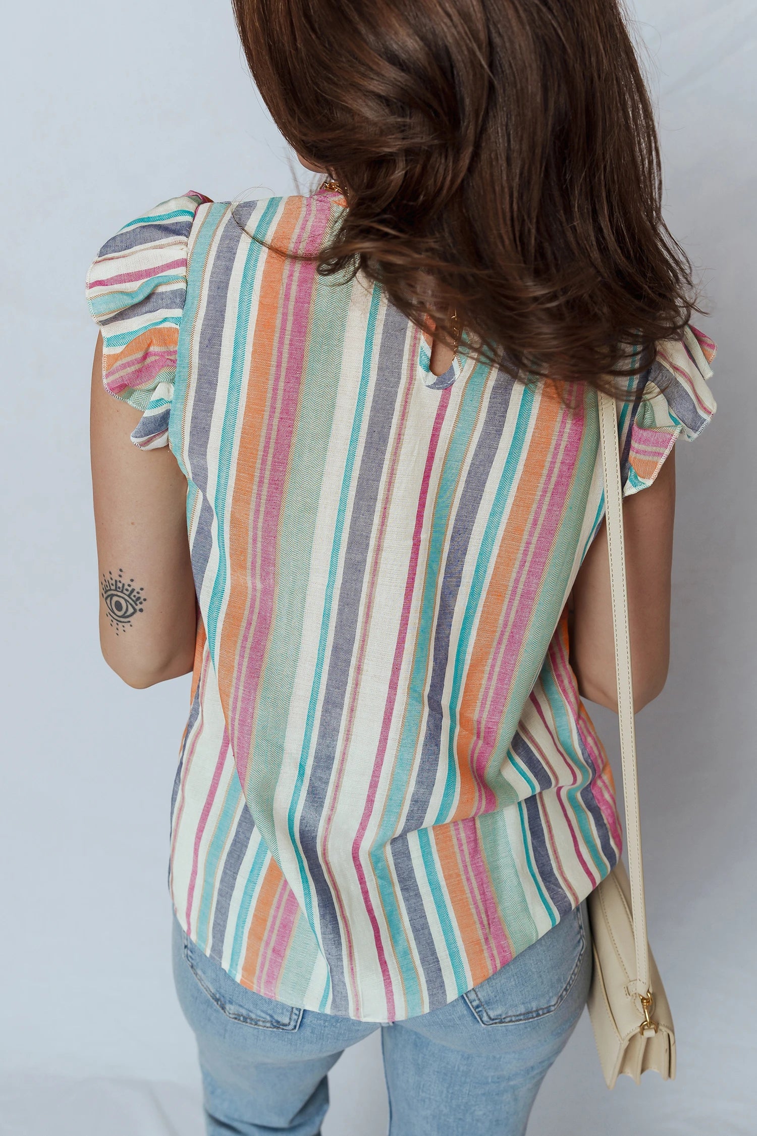 Bright, breezy and made for everyday living, this Rainbow Stripe Blouse is the ultimate feel-good piece, designed to bring colour and effortless style to your wardrobe. Featuring soft flutter sleeves and delicate lace trim detailing, it adds a feminine touch while keeping things relaxed and easy to wear. The lightweight fabric drapes beautifully for a flattering fit, making it perfect for warm days, layering, and year-round styling. Pair it with your favourite denim, white linen or a maxi skirt for that laid-back, free-spirited vibe. A throw-on-and-go blouse that instantly lifts your look! 💙